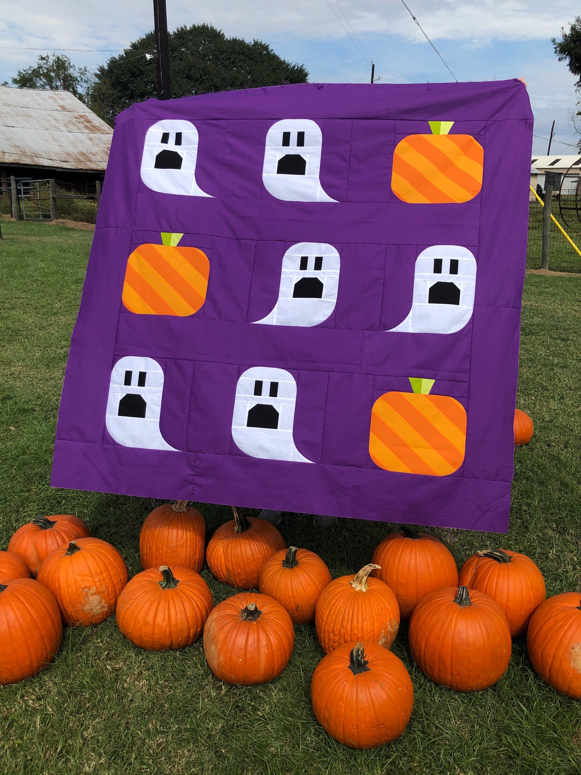 - Directions for making a single Pumpkin block (12" finished), a single ghost block (12" finished), and a throw-size quilt (60" x 60" finished)