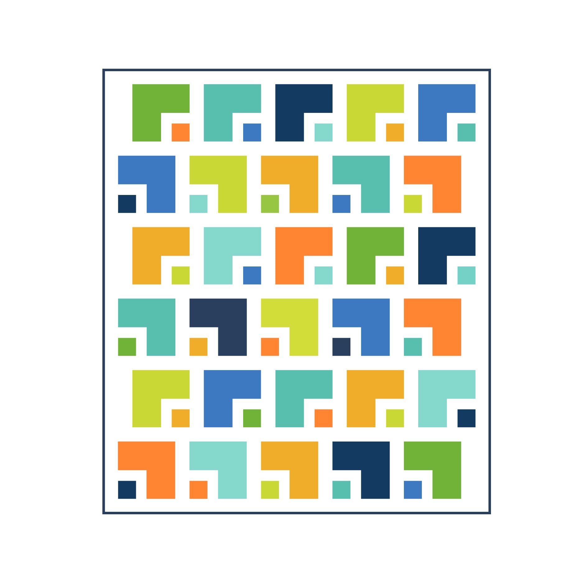 Square Parade is a fun and quick modern quilt pattern! It includes easy to follow diagrams for every step, and you can choose to use yardage, Fat Quarters, Fat Eighths, or 10" squares for the accent fabrics!