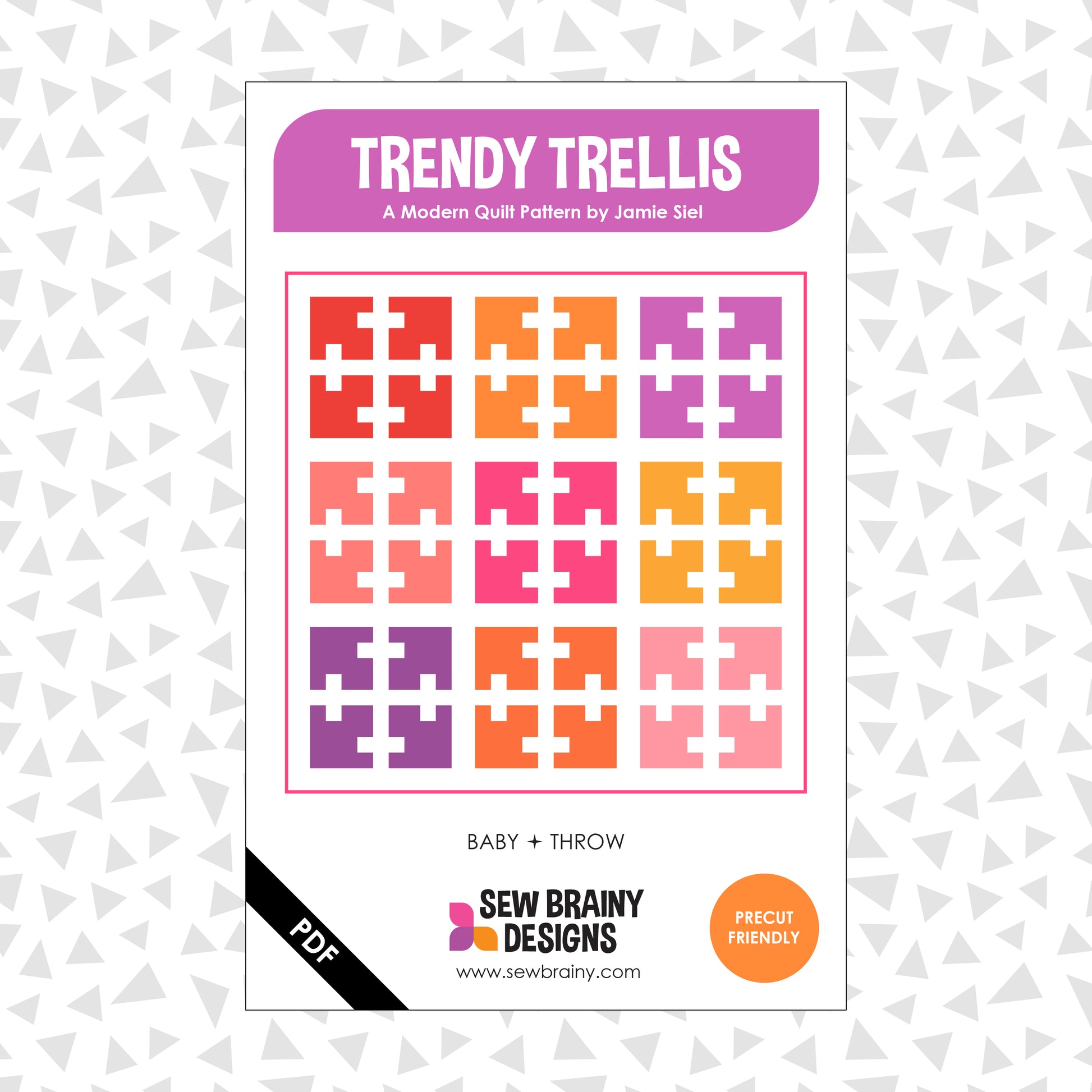 Trendy Trellis is a fun and modern quilt pattern ready for your customization! It includes easy to follow diagrams for every step.